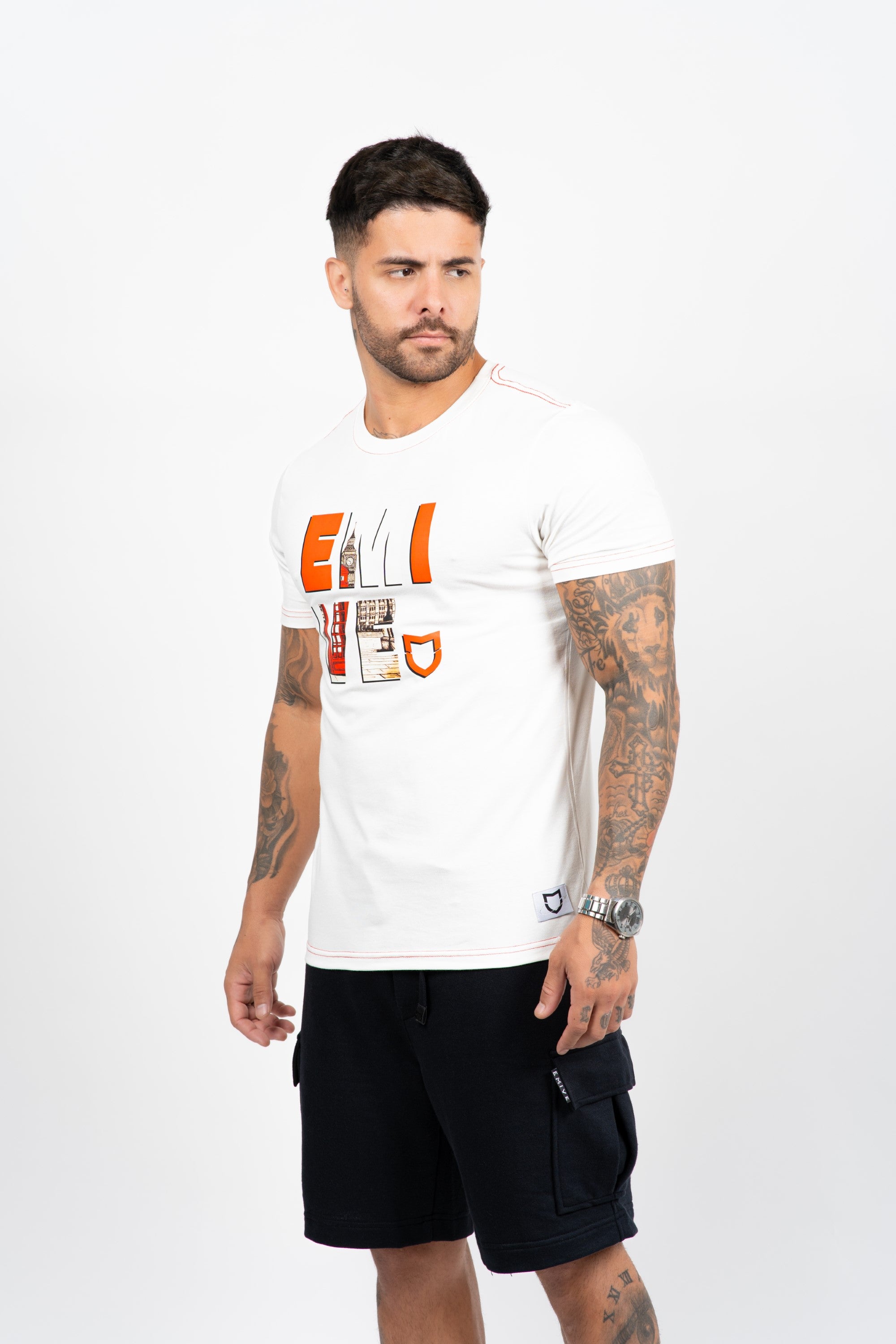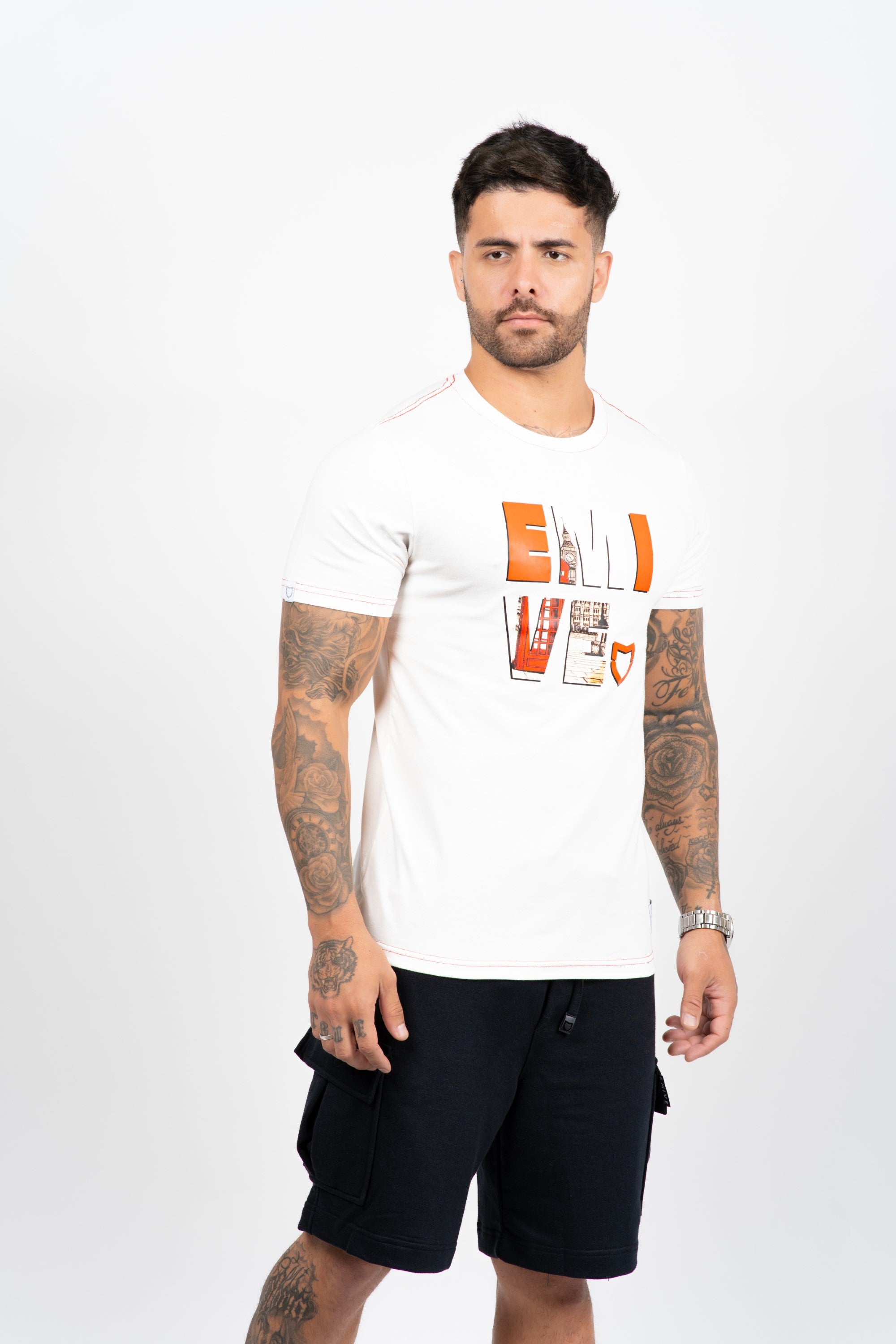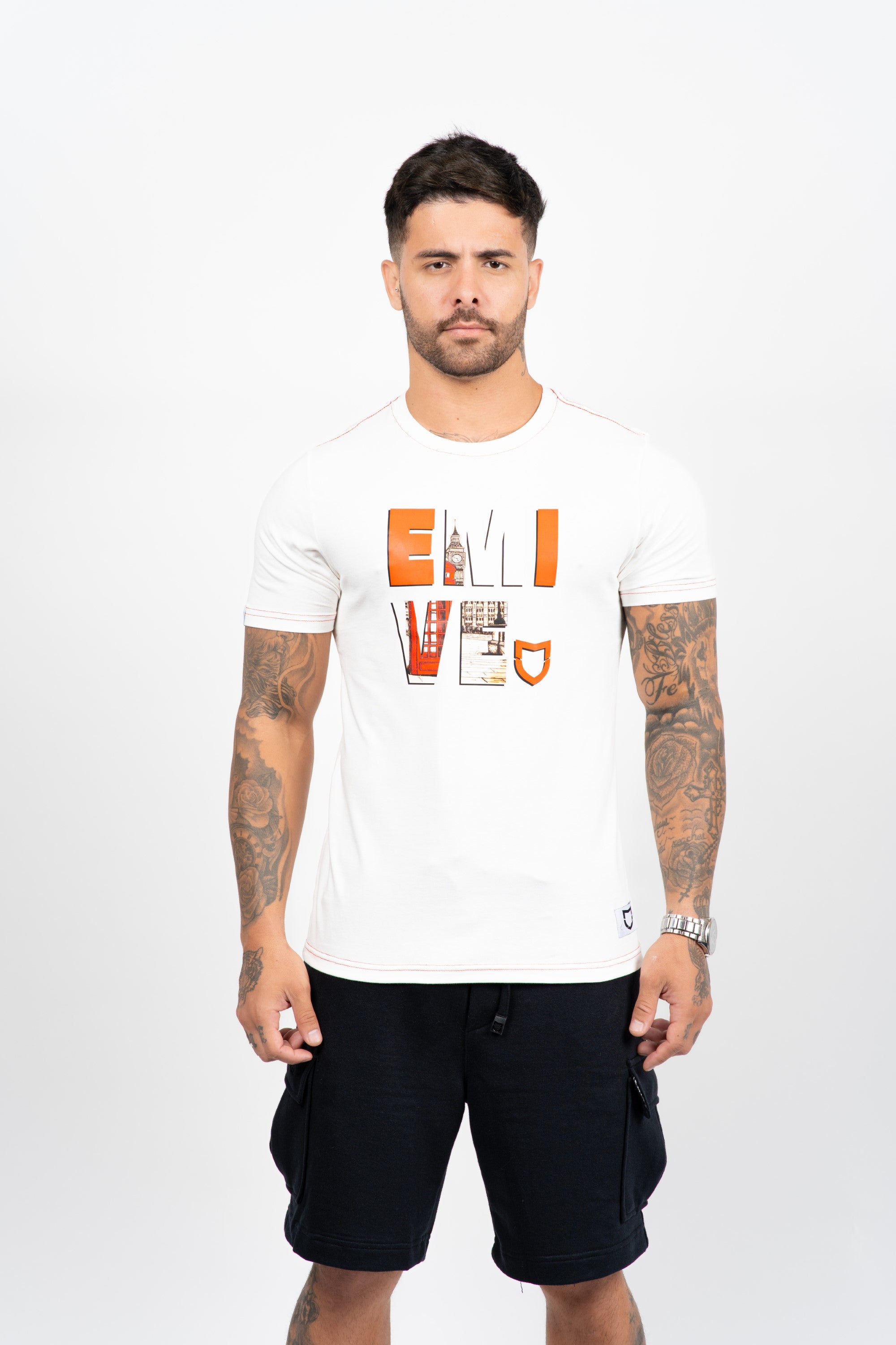Camiseta Emive Long Red Phone Off White
